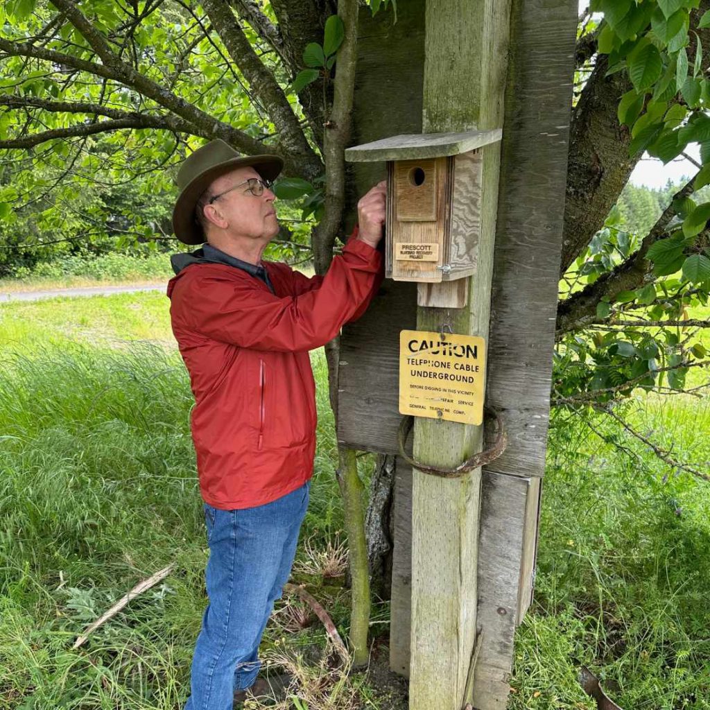 The Prescott Bluebird Recovery Project is a 501(c)3 nonprofit volunteer organization dedicated to preserving the Western Bluebird. Listed as a “sensitive species” by Oregon Department of Fish & Wildlife, bluebirds had nearly disappeared from the northern Willamette Valley. Since the early 1970s volunteers have been working on recovery and preservation of our native bluebirds.